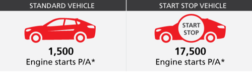 AGM and EFB Batteries are both designed to tolerate the frequent cycling of an ISS equipped car. A standard vehicle starts approximately 1500 times P/A, whereas a Start-Stop equipped vehicle starts approximately 17,500 times P/A.*