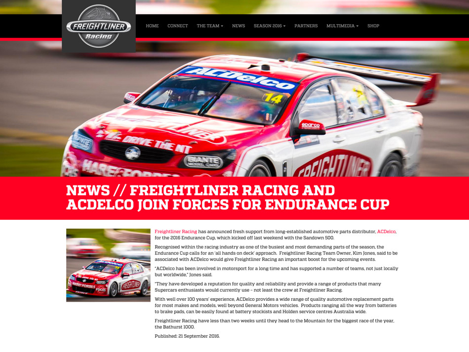 Freightliner Racing has announced fresh support from long-established automotive parts distributor, ACDelco, for the 2016 Endurance Cup, which kicked off last weekend with the Sandown 500.