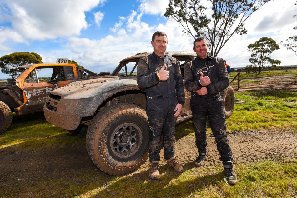 Penola’s Greg Gartner and Jamie Jennings struck gold at the Rainbow Desert Enduro on the weekend, skating their new new #410 R&J Batteries Extreme 2wd Trophy Truck through the mud to take the outright victory. Fresh out of the box from the USA, Gartner debuted the new Geiser Brothers Trophy Truck just a fortnight ago with fourth outright and first in class at Waikerie and backed it up by stepping on to the top step of the podium at Rainbow, which was also the final round of the 2017 CAMS BFGoodrich Australian Off Road Championship.