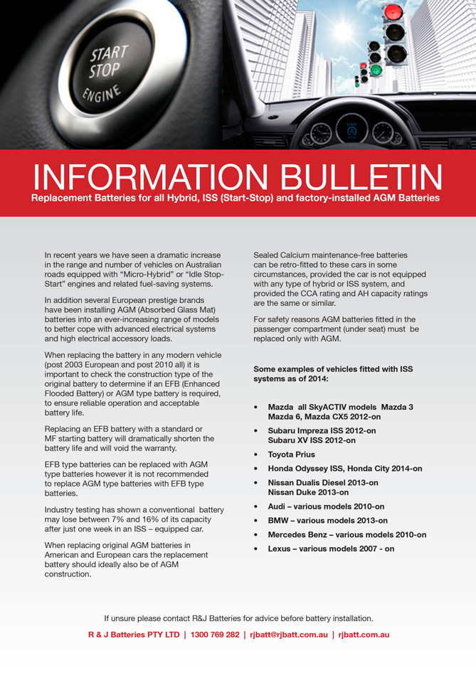Important technical bulletin regarding replacement batteries for all Hybrid, ISS (Start-Stop) and factory-installed AGM Batteries